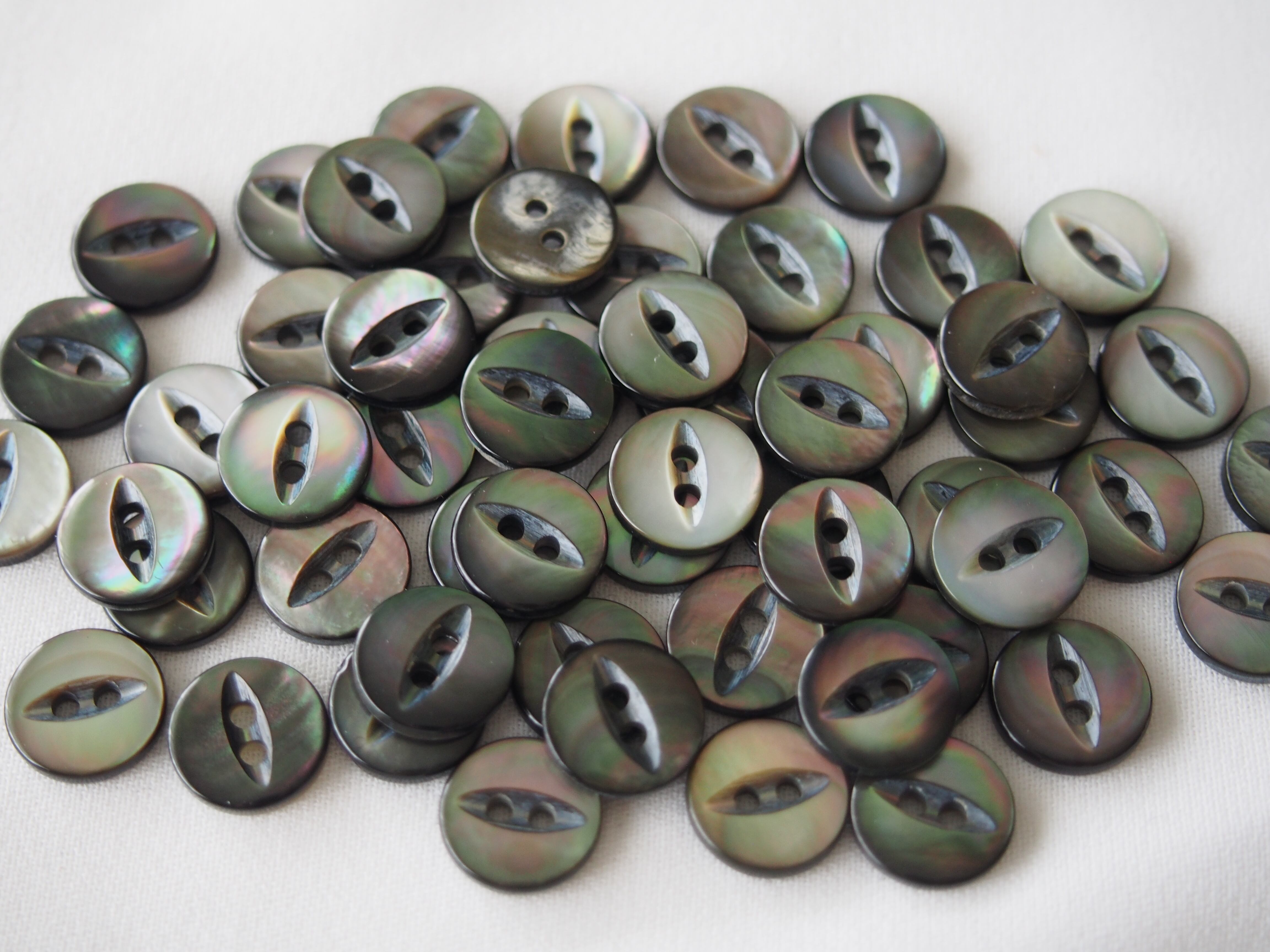 黒蝶貝ボタン 10mm 猫目2穴【坊主型】1セット(56個入り)