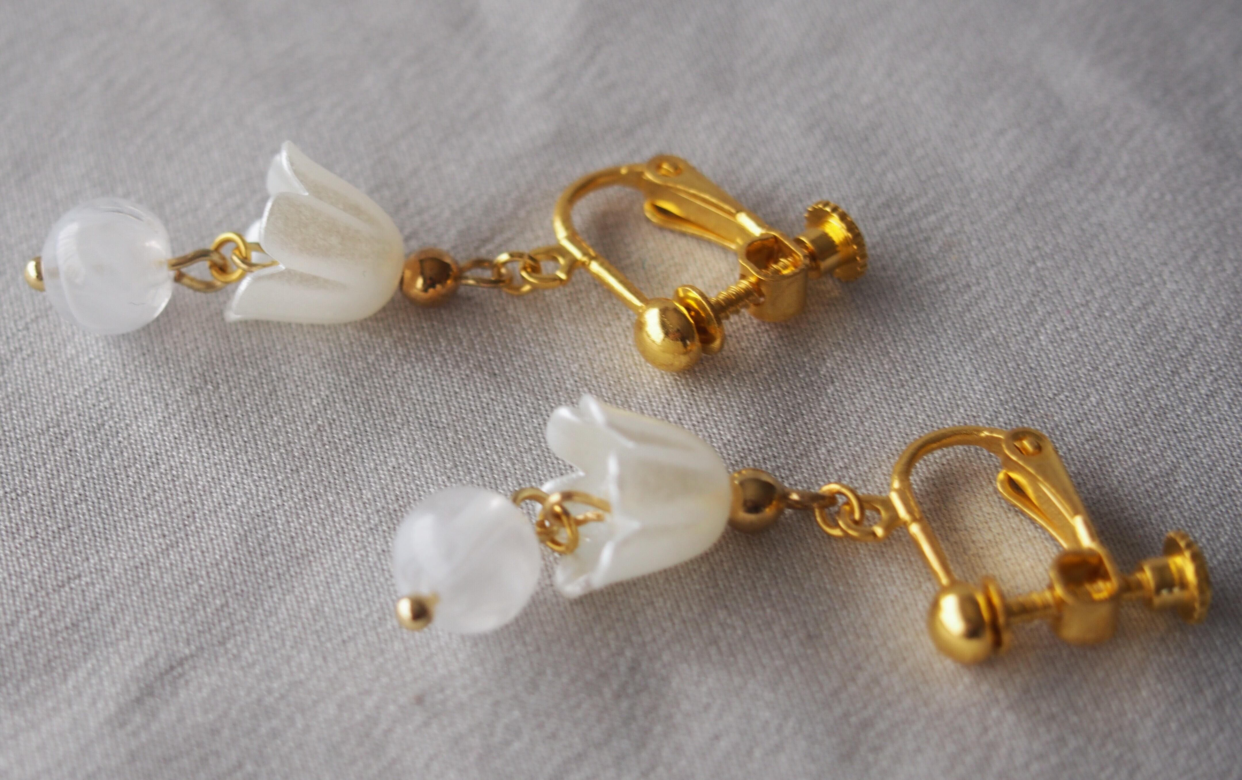 すずらんをモチーフにしたハンドメイドのイヤリングです。