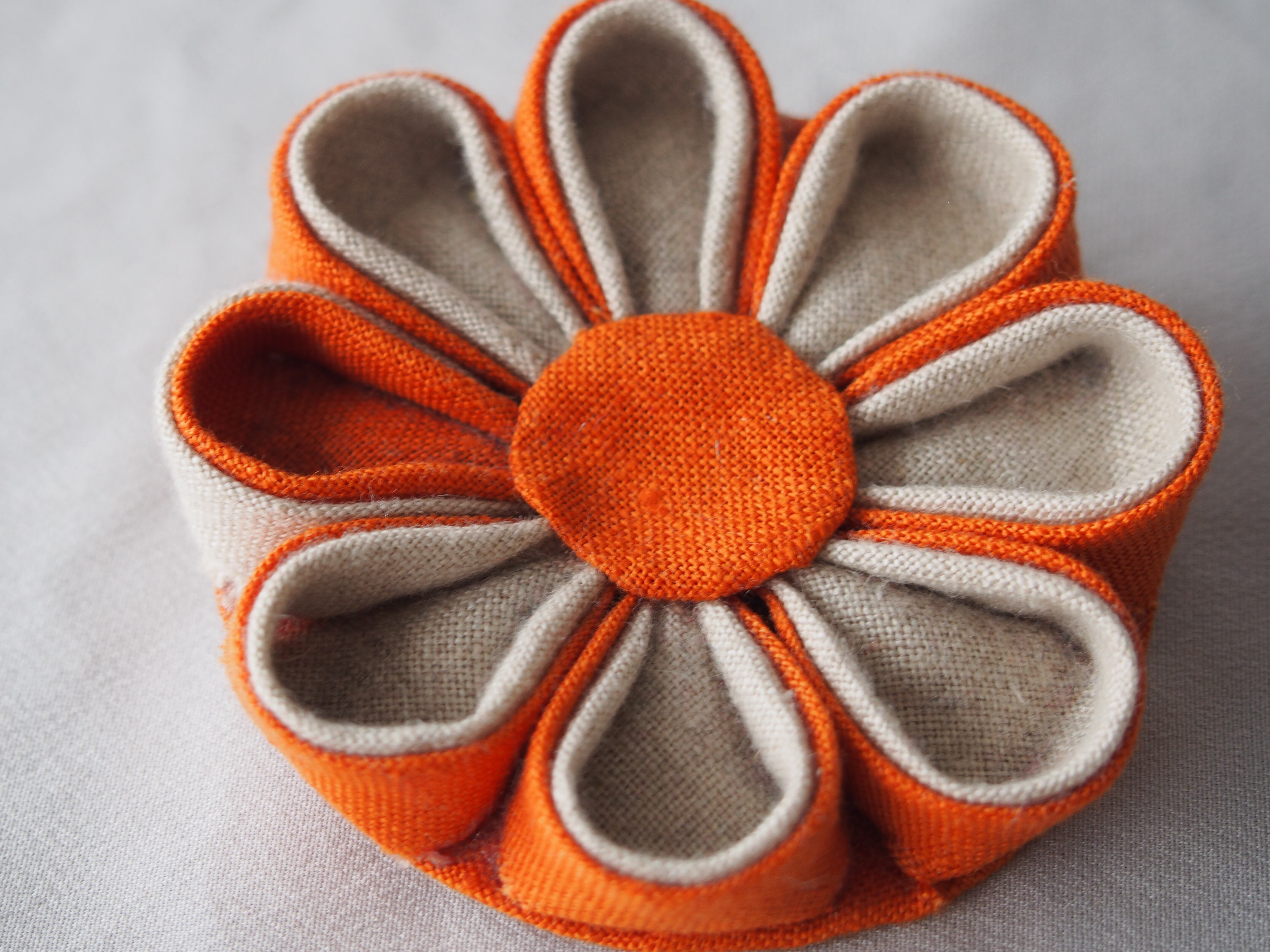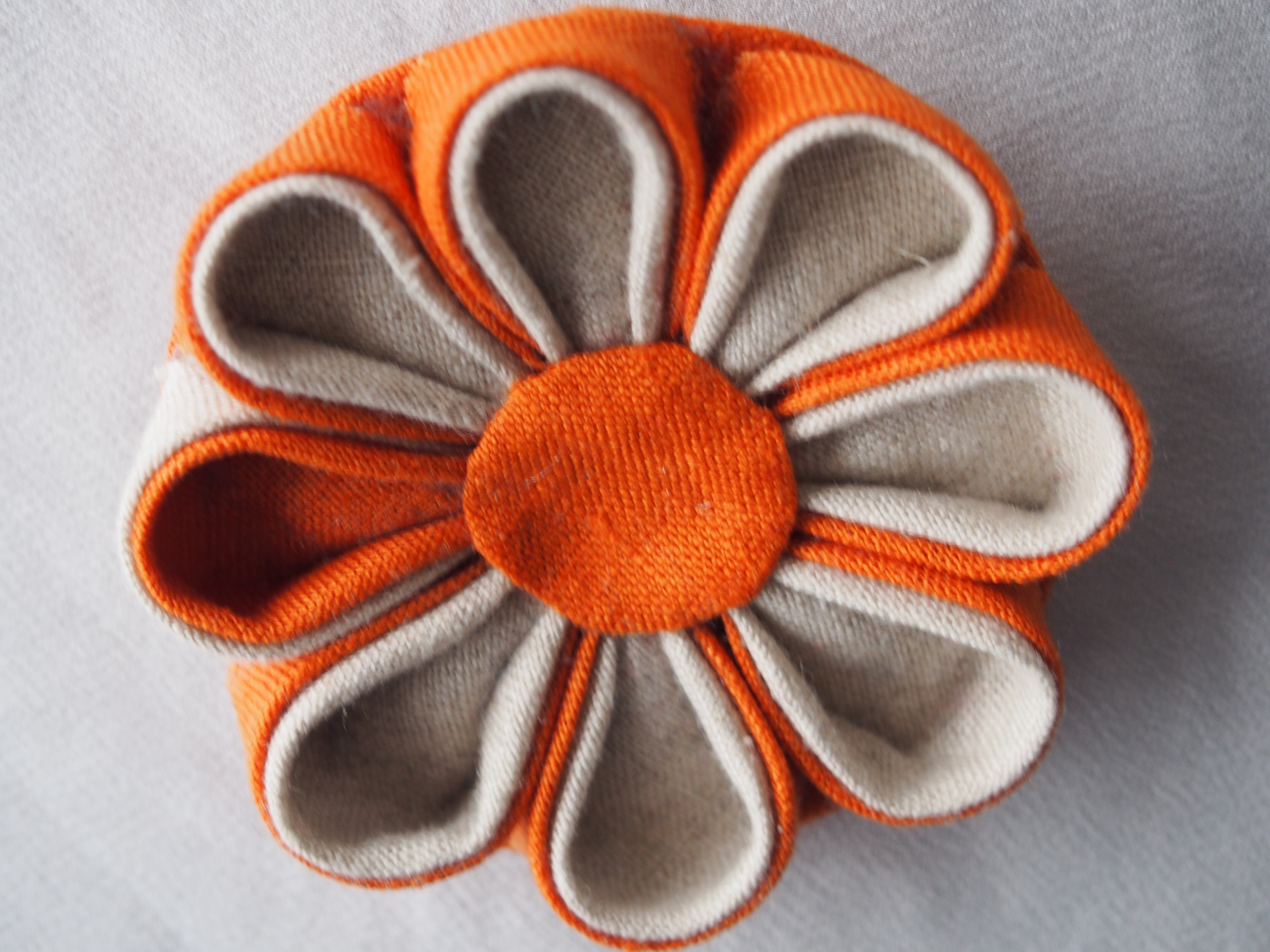 「お花のコサージュ6 オレンジ色と薄い灰色」