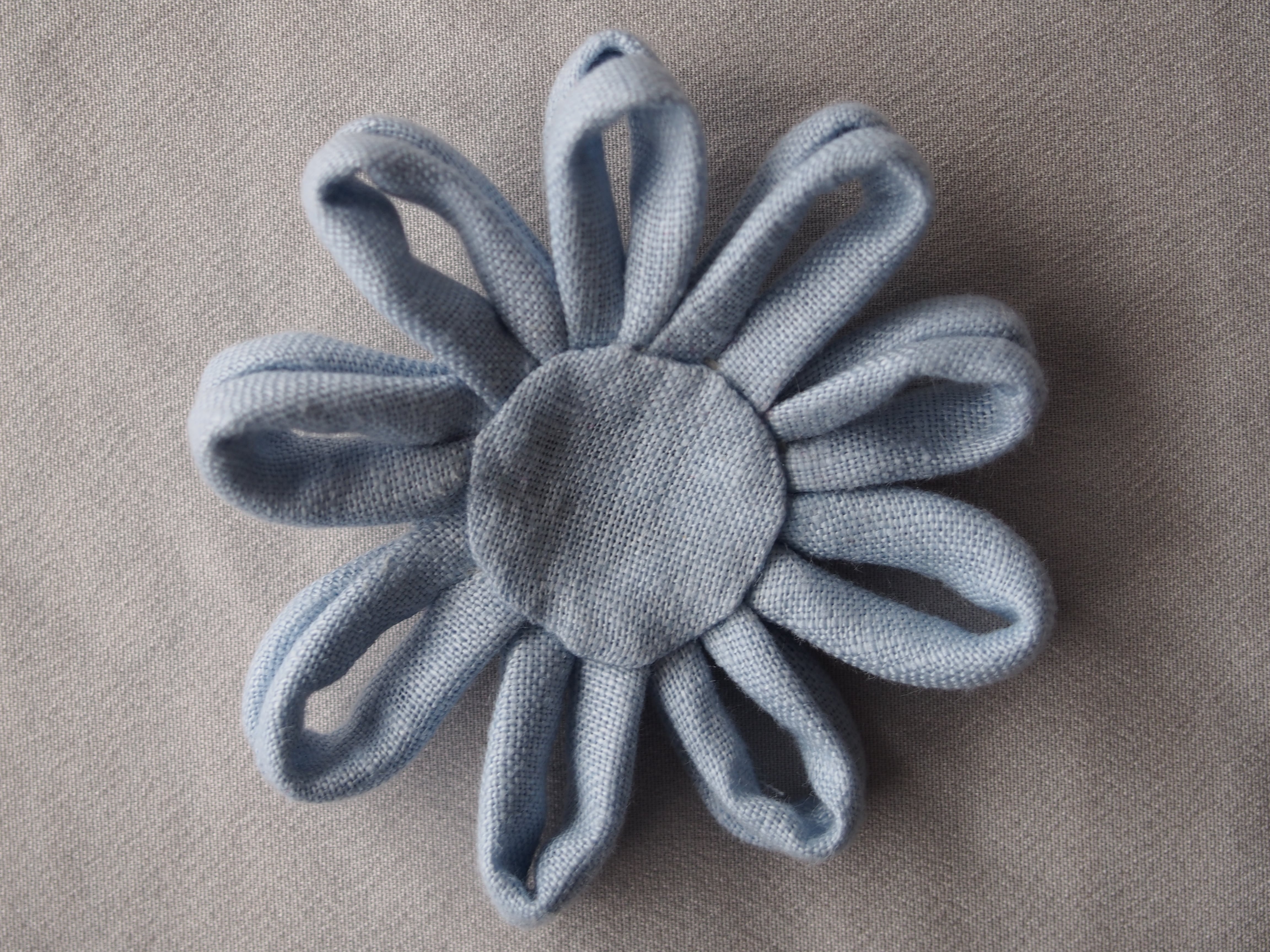 華やかな装いに彩りを添える「お花のコサージュ14 淡い水色」。一部につまみ細工技法を用い、丁寧な手作業で作り上げました。多彩なパープルの色合いが、まるで咲き誇るお花のような美しさを演出します。身に付けるだけで、あなたのスタイルが一気に華やかに輝きます。